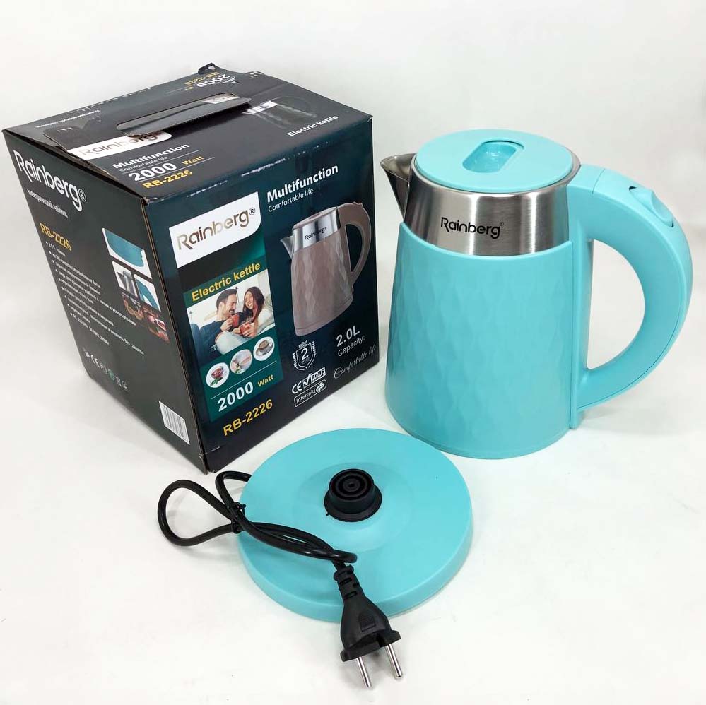 | Товар | Чайник електричний Rainberg RB-2226BR з неіржавкої сталі 2000 Вт 2 л, безшумний чайник. Колір: блакитний IS-87 |