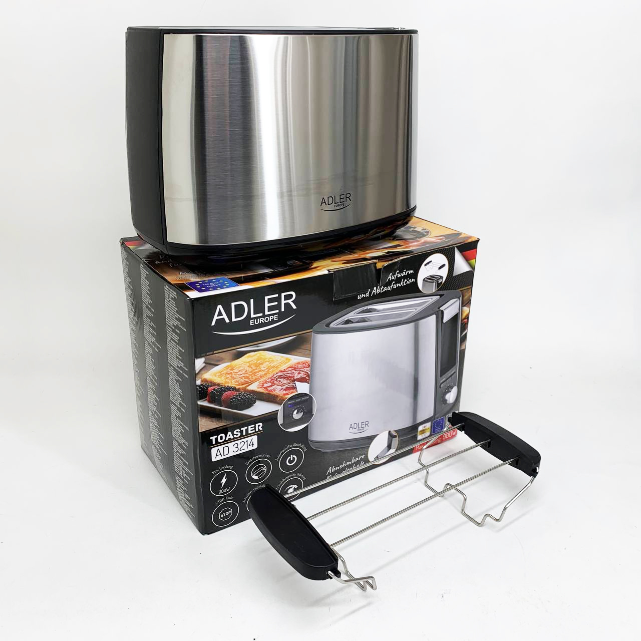 ✨ Ефективний тостер AdlerAD-3214 потужністю 900 Вт, в якому можна приготувати два тости одночасно.
